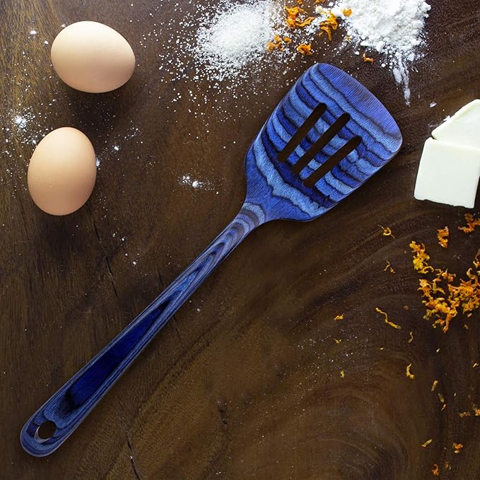 • Masterfully crafted from layers of birch wood for a gorgeous deep blue color; spatula measures 12.5 inches long