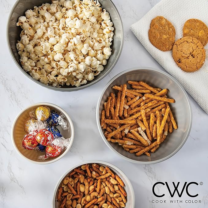 • Cook with Color 4 piece plastic mixing bowl set - non slip bowls with lids; easy to clean, sturdy mixing bowls.