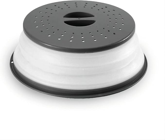 WENWELL Vented Collapsible Microwave Splatter Cover for Food,Kitchen Gadget dish bowl Plate Proof lid Can be Hung,Dishwasher-Safe,BPA-Free Silicone & Plastic,10.5 inchs,gray
