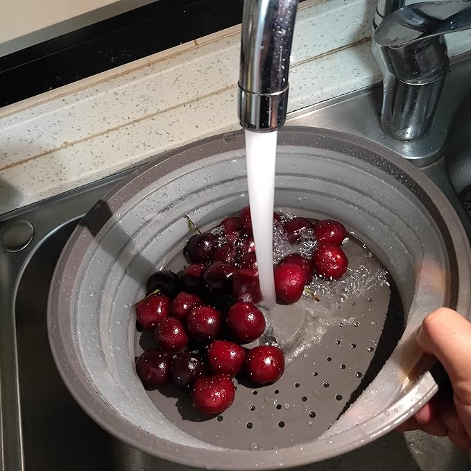 • Nice Vent Holes on the top:The vents allow moisture to exit during heating,so one can avoid food explosions and messy cleanups,They trap quite a lot of steam,which allows us to use it as a cooking lid on our dishes,of course it is also a multifunctional fruit and vegetable drain basket