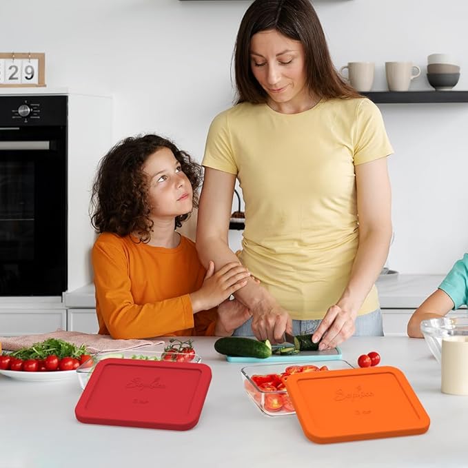 Sophico 3 Cup Rectangle Silicone Storage Cover Lids Replacement for Pyrex 7210-PC Glass Bowls (Container not Included) (RED-ORANGE, 4 Pack)