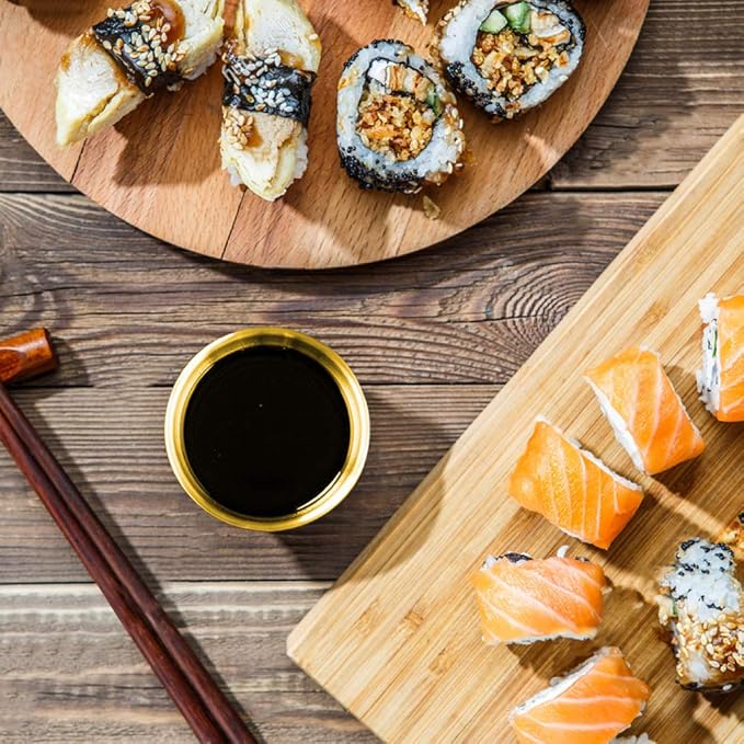 8 Pack 3.2inch Stainless Steel Sauce Dishes Mini Individual Saucers Bowl Round Seasoning Dishes Sushi Dipping Bowl Appetizer Plates, Golden