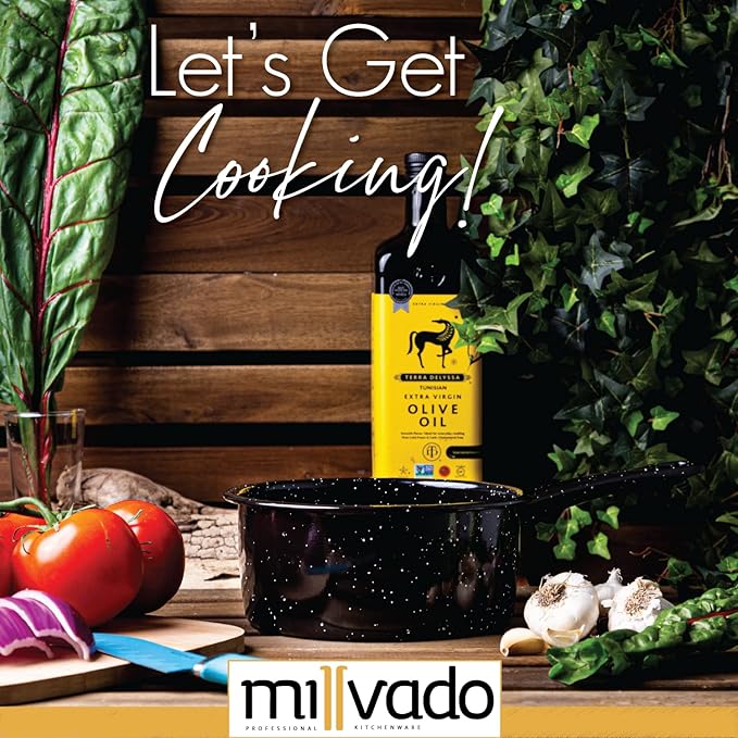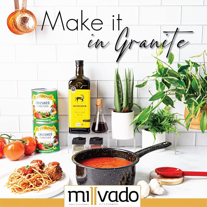 2 Quart Granite Saucepan, Naturally Nonstick Sauce Pots, Speckled Enamel Ware Cookware, Small Sauce Pan for Cooking and Boiling - Granite Cooking Pot for Stovetop, Campfire, Outdoor Stove