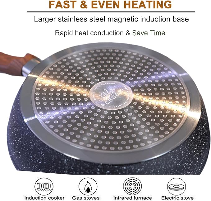• 𝑮𝒓𝒆𝒂𝒕 𝑸𝒖𝒂𝒍𝒊𝒕𝒚 & 𝑺𝒆𝒓𝒗𝒊𝒄𝒆 : Quality first, Service Utmost. Each Kitchen Academy cookware passes a strict multi-inspection process. If you meet any problems, don't hesitate to contact our 24/7 online customer service which will reply to you ASAP to help with your worries