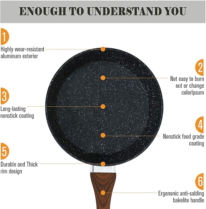 • 𝑰𝒏𝒅𝒖𝒄𝒕𝒊𝒐𝒏 𝑷𝒐𝒕𝒔 𝒂𝒏𝒅 𝑷𝒂𝒏𝒔 𝑺𝒆𝒕 𝑵𝒐𝒏 𝑺𝒕𝒊𝒄𝒌: When buying cookware, one of the important things is nonstick capabilities. The graniteware coating do a good job in preventing food from sticking. Also, you'll be able to cook healthier meals for your family since you won't have to use as much oil. You can safely cook tomato sauce in granite cookware cookware, the taste and smell of your food will not change even if you use acidic or strong-smelling ingredients