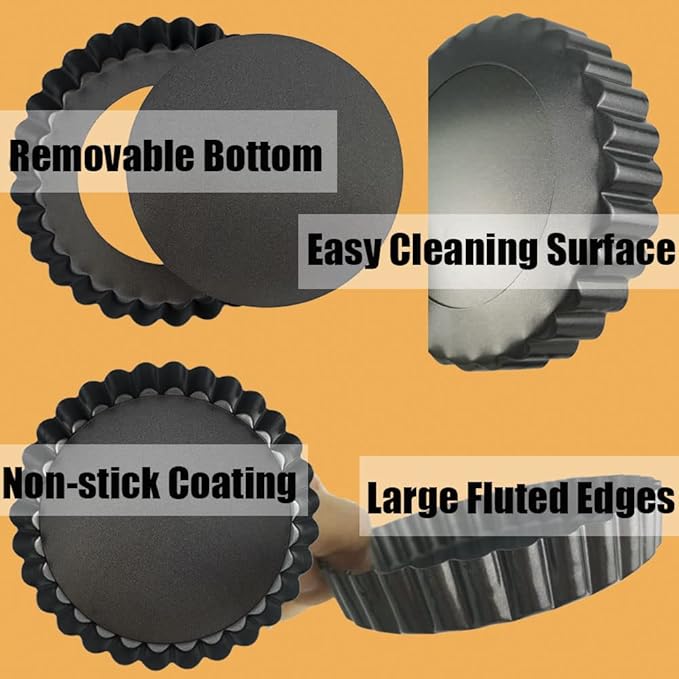 • 【Perfect Mini Tart Pans for little Treats】Ideal for crafting a variety of small desserts, these 5-inch tart pans are perfect for mini fruit tarts, quiches, cheesecakes, pecan tarts, and more. Their compact size makes them a must-have for creating adorable, portion-controlled treats that impress every time.
