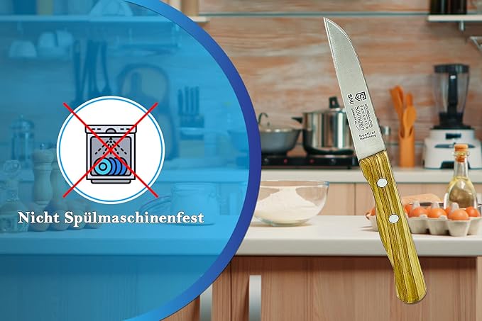 • ✅ ERGONOMIC DESIGN: Having blade length of 8 cm and total length of 18 cm our professional knife Solingen made with olive wood handle provides non-slip, precise and comfortable control for smooth and long hours use.