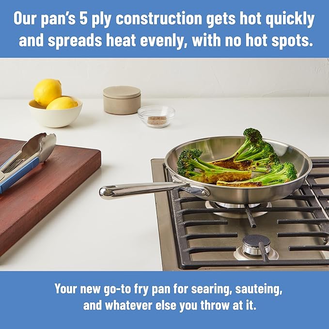 Misen 5-Ply Stainless Steel 8" Frying Pan - Professional Cookware for Induction, Gas and Electric - Dishwasher Safe, Oven Safe to 800°F - Durable, Versatile, Even Heating
