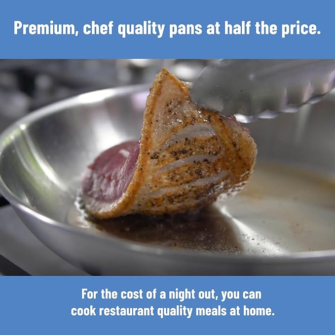 Misen 5-Ply Stainless Steel 10" Frying Pan - Professional Cookware for Induction, Gas and Electric - Dishwasher Safe, Oven Safe to 800°F - Durable, Versatile, Even Heating