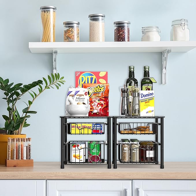 Simple Houseware Stackable 2 Tier Basket Drawer, Black