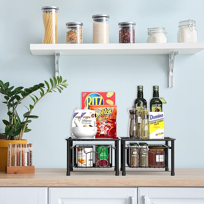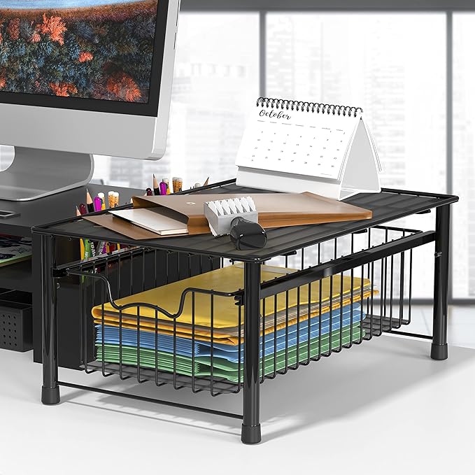 • Sliding basket for easy access in limit space and stackable design (Buy two sets and stack them together)