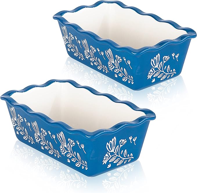 • 【BEAUTIFUL PATTERN】 The Loaf Pans feature Hand-painted pattern and bright color for easy daily use. Classical and remarkable display can be a charming decoration in your table and kitchen.