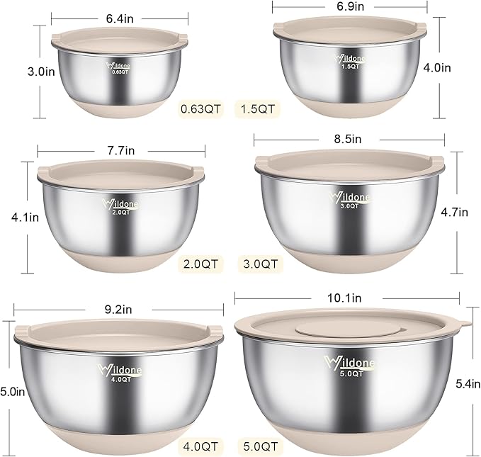 • Durable and High Quality: Wildone bowls set is constructed of mirror-finish interior and matte-finish exterior, features an attractive and elegant look enhancing your kitchen. Made of high-quality stainless steel for lasting use, which is dent resistant and rustproof, easy to clean