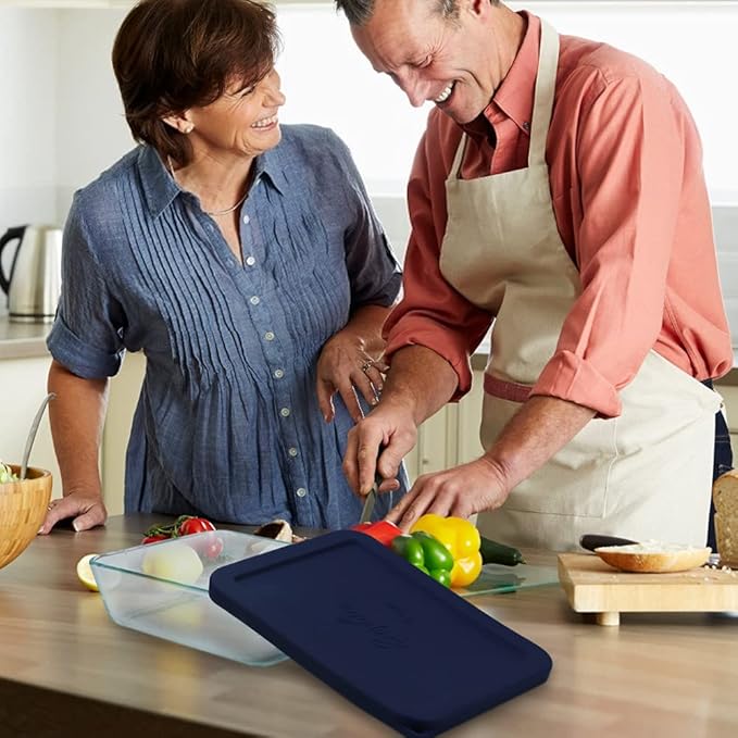 Sophico 6 Cup Rectangle Silicone Storage Cover Lids Replacement for Pyrex 7211-PC Glass Bowls, Container not Included (Navy Blue)
