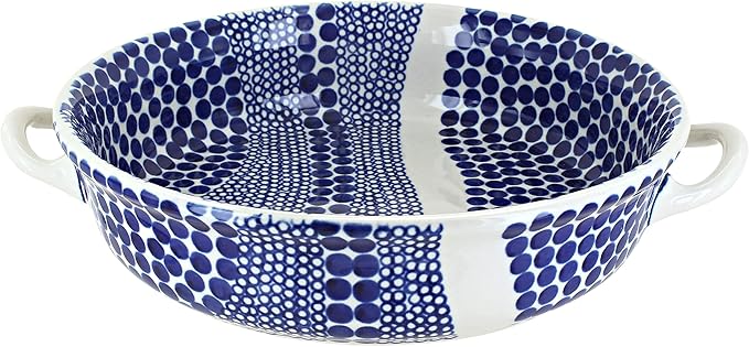Blue Rose Polish Pottery - Blue Zara Round Casserole with Handles - 10.25" Diameter - Unique, Dishwasher Safe, & Durable Bakeware