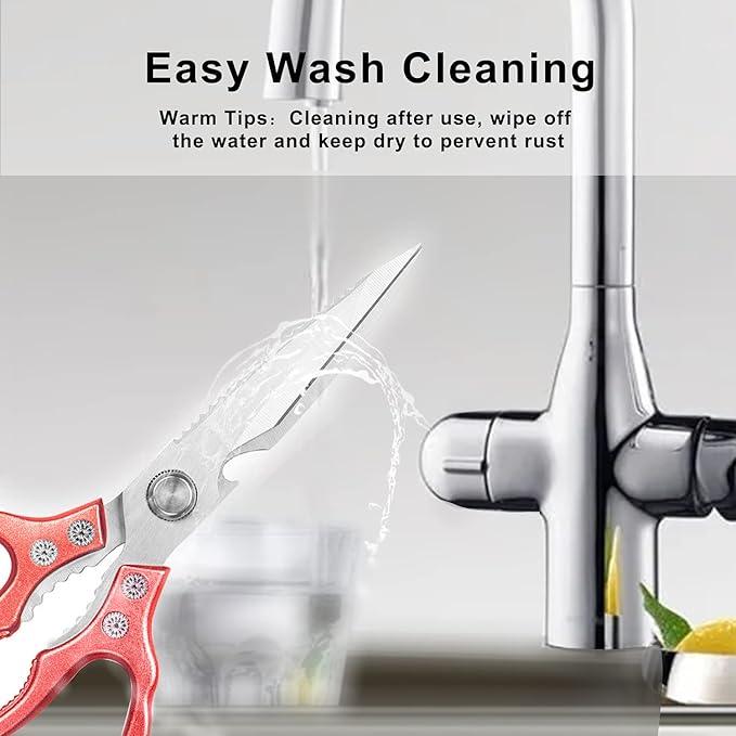 • ✂[More Functions] Sharp scissors have more functions. They can be used to scrape fish scales. Of course, they can be used to open bottles and crush walnuts or nuts. Clever scissors are also good gifts for mothers, wives, and friends! Give a gift of chef-grade scissors to any culinary enthusiast on the list; they will love the culinary scissors and they will thank you for this thoughtful and useful gift.