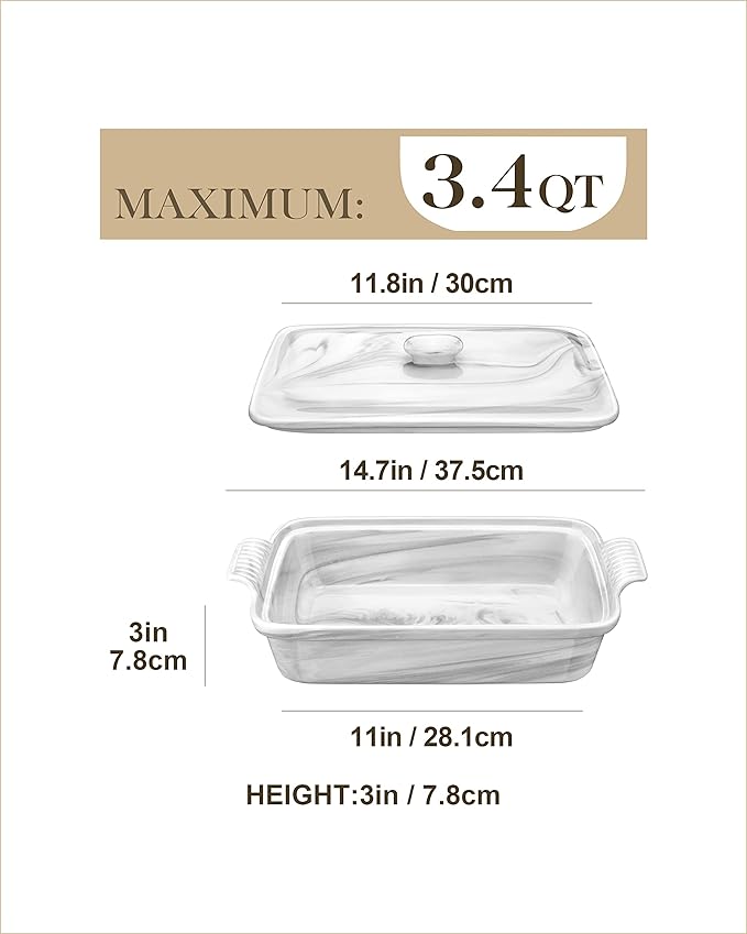 • 【GENEROUS CAPACITY】With a 3.4 quart capacity, this deep lasagna pan provides ample space to cook large portions, making it ideal for family gatherings, parties, and holiday meals.