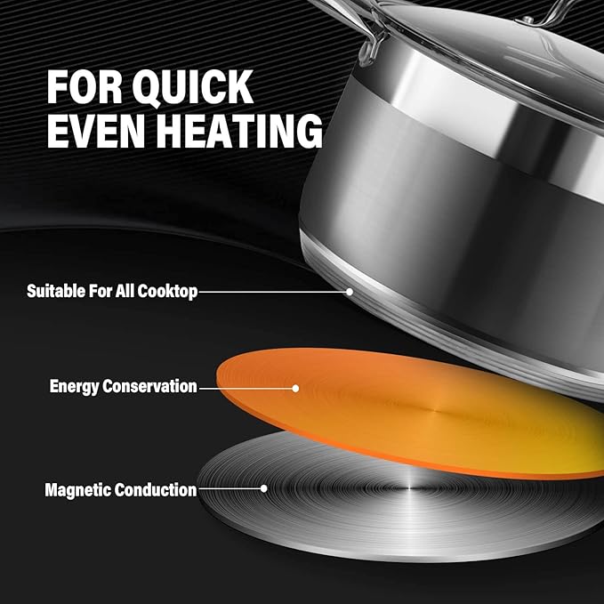 • ✅ 【Suitable for any stove】This pot have a tri-ply bottom for even heating,Compatible with all stovetop, including induction, gas, ceramic, electric, halogen etc. Dishwasher safe, oven safe