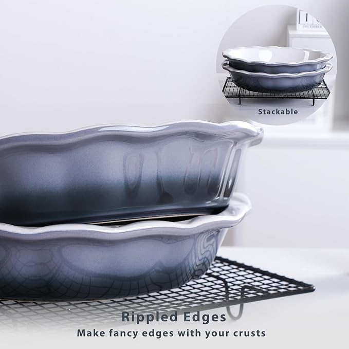 Lareina Ceramic 9 Inch Deep Dish Pie Pans, Set of 2, Grey, Non-Stick, Oven & Dishwasher Safe, Ideal for Baking Pies, Quiches, Cakes