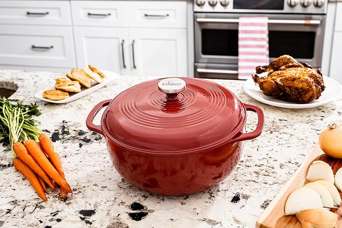 • YOUR GO-TO DUTCH OVEN: A flawless pairing of form and function that doesn't quit. The Lodge Dutch Oven not only makes your kitchen look good but is an enameled cast iron classic great for preparing and serving memorable meals. Broil, braise, bake or roast your favorite meals in the oven up to 500 Degree F.