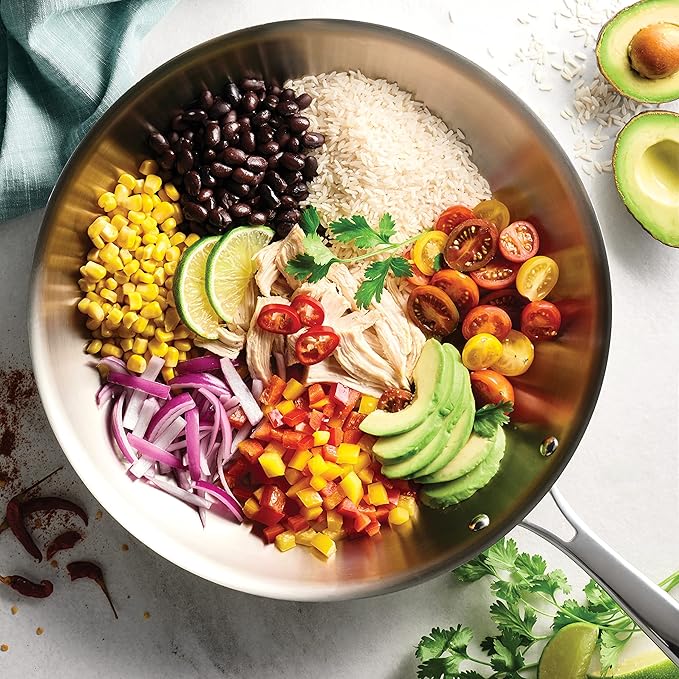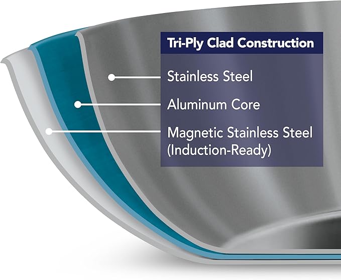 • Tri-Ply Clad Construction: Features an aluminum core for even heat distribution and precise cooking control