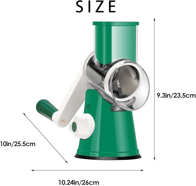 Ourokhome Rotary Cheese Grater Hand Crank, Kitchen Shredder Speed Mandolin Slicer Nut Grinder with Handle and Drum Blades for Cheese, Vegetable, Walnut, Chocolate, Potato, Carrot, 3 Blades, Emerald