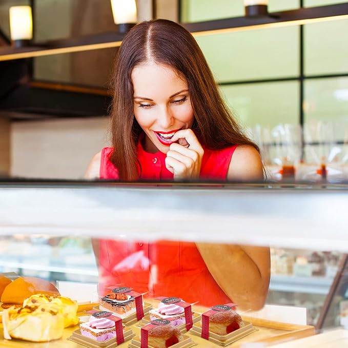 • Great Value Mini Cupcake Containers- You will receive 50 sets clear plastic mini cake boxes muffin holders and 50 pcs long sealing stickers, you can tape the stickers onto the container for securely closure, it also add a decorative touch to the mini cake box