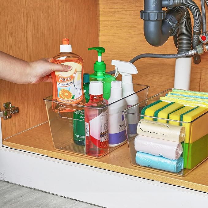 • Built-in Handles ---- The bins have handle grips on the edge making it easy to carry and access contents. You just take the bins out and get the items you want, then put it back in so simple. Organize all of your kitchen essentials to make organizing and everyday living with ease, creating a clean and organized home.