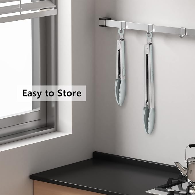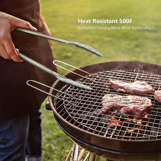 2 Pack Warm Grey Kitchen Tongs, Premium Silicone BPA Free Non-Stick Stainless Steel BBQ Cooking Grilling Locking Food Tongs, 9-Inch & 12-Inch