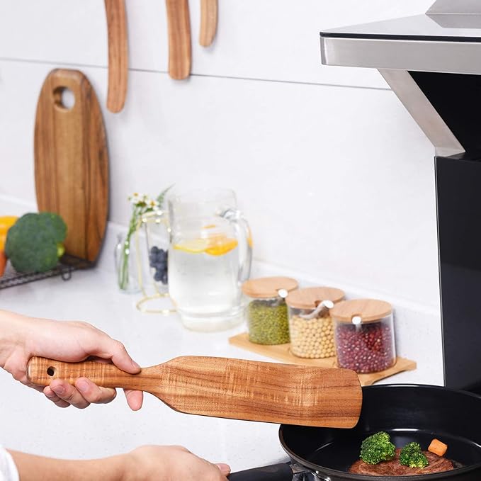 • Heat Resistant & Best For Nonstick Pan: Teak wood is one of the hardest,the heat safe up to 450 degree Fahrenheit.Don't worry about it melt or burn hands while cooking.The natural wooden spatula can prevent non-stick pots and pans from scratch and damage