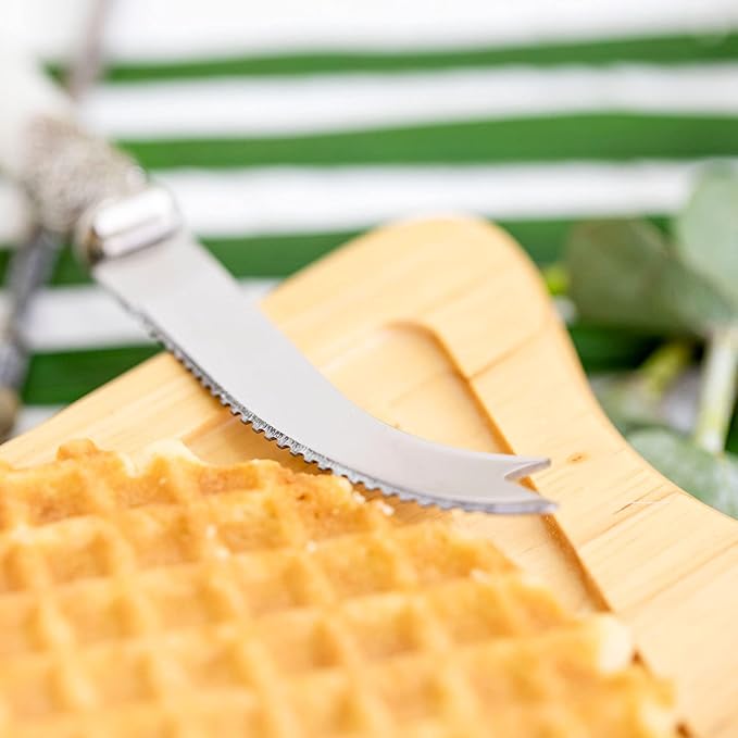 • VERSATILE FOR EVENTS - It is designed for different kinds events, Especially like wedding, dinner party, entertaining meal, birthday party, daily use etc,. There are1 cheese fork, 1 cheese spreader, 1 cheese knife for soft cheese and 1 cheese knife for hard cheese in the package.