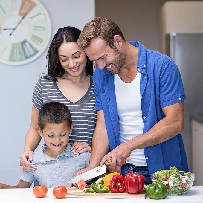 • Ergonomic pakka handle: To make it more professional and minimize any fatigue, finger numbness or aches after holding it continuously for an extended time the knife's handle is made from Pakka. This is material that originates from Africa and its known for its comfort; strength and stability