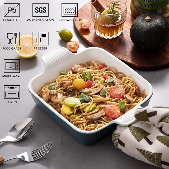 • Durable Porcelain Under High Temperature - This square baking dish is made of durable porcelain,safe for microwave, freezer, dishwasher, and oven up to 500°F. Great heat retention makes the food warm for a long time. The long-lasting material blocks moisture absorption and prevents cracking, crazing and rippling.