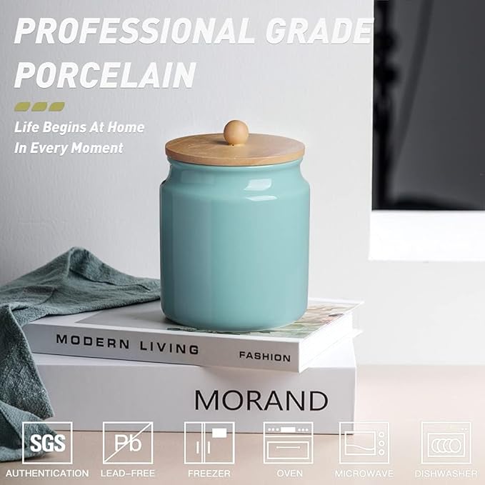 Sweejar Ceramic Kitchen Canisters, 28 FLOZ Porcelain Food Storage Jar with Airtight Seal Wooden Lid, Home Container Serving for Coffee Beans, Tea-leave, Sugar, Salt, Tool Bucket (Turquoise)