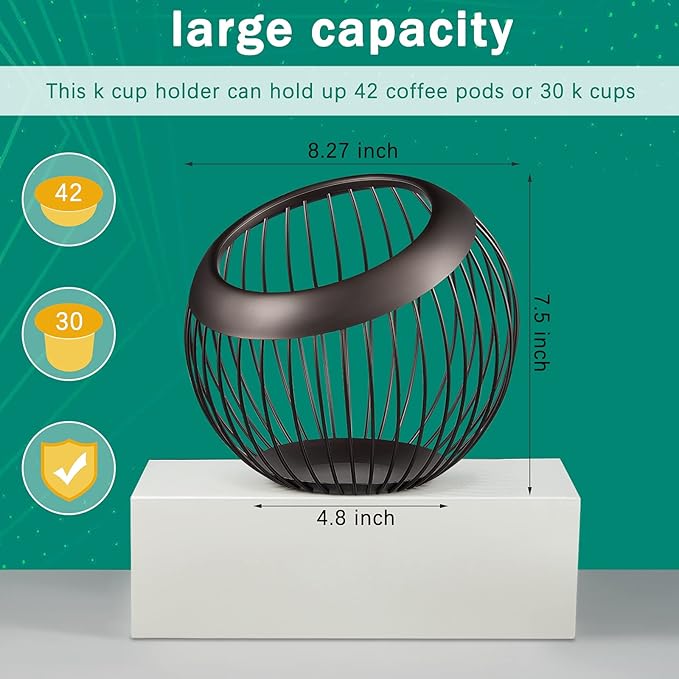 • Ideal for multiple styles: our coffee pot holder comes in spherical design, the bronze finish of our product matches well with most home decorations; The sleek-looking coffee pod holder adds a touch of elegance to the overall aesthetics, bringing more fun to your coffee station