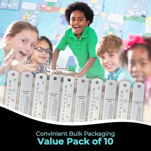 • Superb Value For Money - The set includes 10 professional grade 12 inch / 30cm stainless steel rulers with centimeters and inches. This bulk pack is suitable for crafting, drafting and architectural projects, and woodworking.