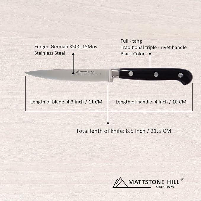 Kitchen Utility Knife - MATTSTONE HILL 4.3" Paring Knife, Vegetable Knife, German Steel, Triple Rivet Handle