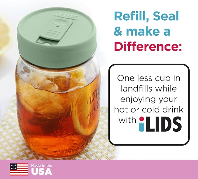 • iLIDS Mason Jar Drink Lid, Regular Mouth, Celery, Pack of 2