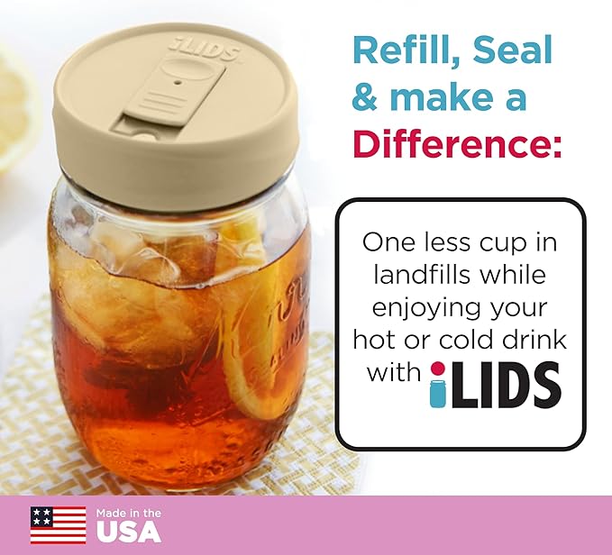 • iLIDS Mason Jar Drink Lid, Regular Mouth, Butter, Pack of 2