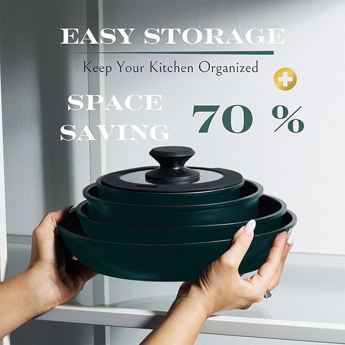 • Durable Nonstick Cookware Set: Our kitchen pots and pans set is made from top-quality materials, thick aluminum, which is stable. The edges are smooth to ensure the detachable handles are tightly held and safe. Our kitchen cookware sets are non-toxic and free from PTFE and PFOA.