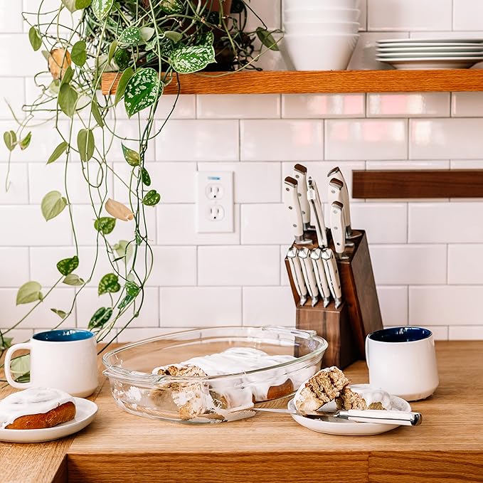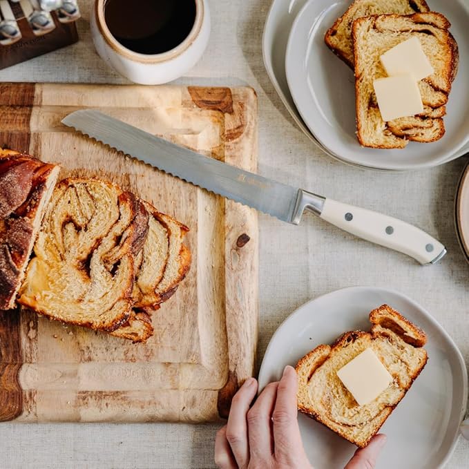 • Set Includes: 1x 8" Chef Knife, 1x 8" Bread Knife, 1x 8" Slicing Knife, 1x 5" Utility Knife, 1x 3.5" Paring Knife, 4x 5" Steak Knives, 1x Shears, 1x Acacia Block