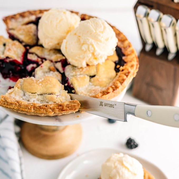 Yatoshi 12 Piece White Knife Block Set - Pro Kitchen Knife Set Ultra Sharp High Carbon Stainless Steel with Ergonomic Handle