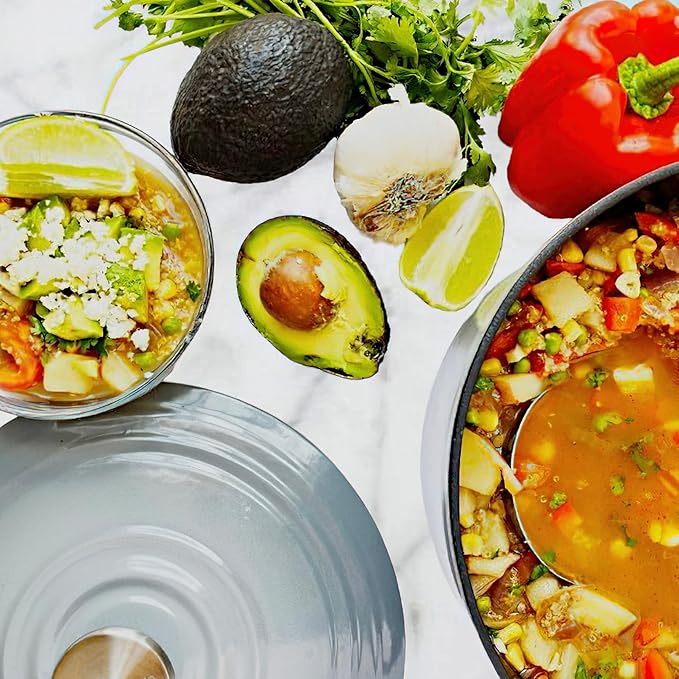 • HEIRLOOM-QUALITY CRAFTSMANSHIP: Built to last a lifetime, our Dutch oven boasts a durable enamel coating that resists chipping, cracking, and staining. Crafted from the finest cast iron using advanced sand-casting techniques, each piece features consistent thickness and shape, offering you the best in both form and function.