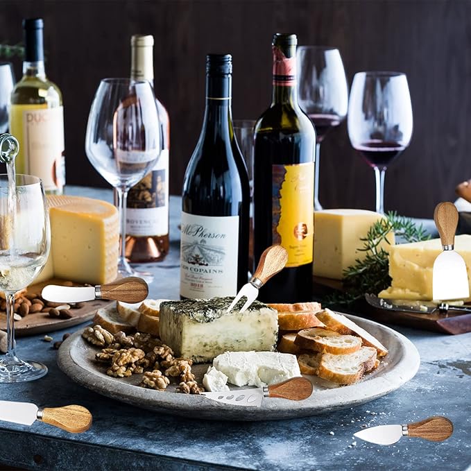 Premium 6-Piece Cheese Knife Set - Acacia Wood Handle Stainless Steel Cheese Knives for Charcuterie Board