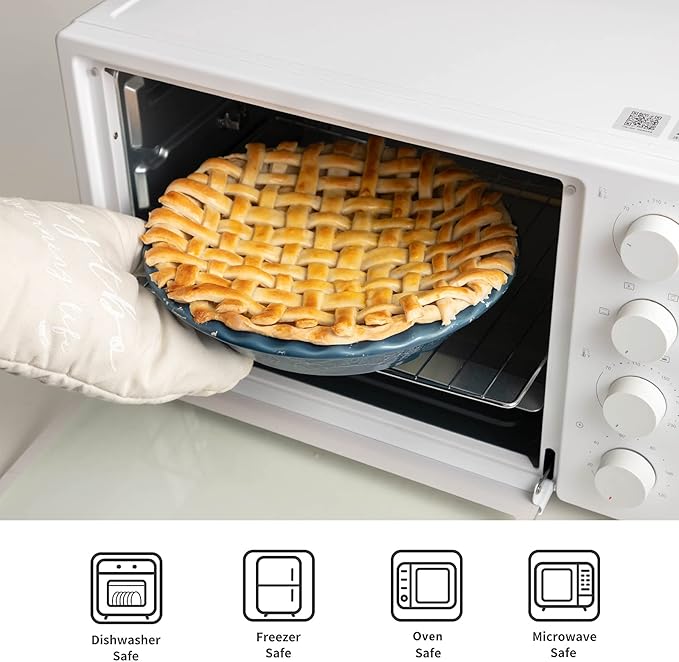 • Enjoy Your Crisp Pie: Still worry about your pie coming out from oven with a soggy bottom? This will never happen on FE pie pan. Made of premium stoneware which owns good thermal conductivity, enables a pie be baked slowly and evenly without drying out.