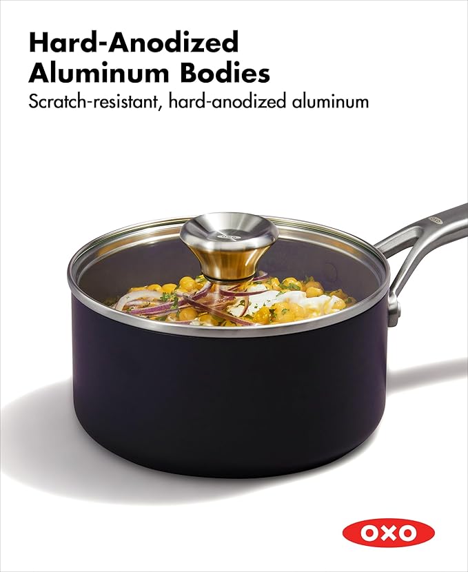 OXO Professional 10 Piece Cookware Pots and Pans Set, Hard Anodized Ceramic Nonstick PFAS-Free,Stainless Steel Handles,Induction,Skillets,Saute,Diamond Reinforced Coating,Dishwasher & Oven Safe,Black