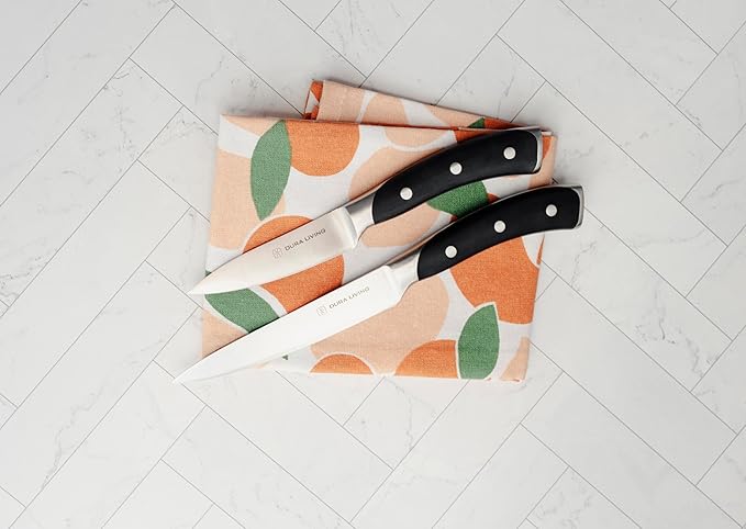 • Ultra-Sharp German Steel Blades: Engineered for performance, this set includes a 5” utility knife and a 3.5” paring knife, both made from high-quality stainless steel, offering precision and sharpness for all your kitchen tasks.