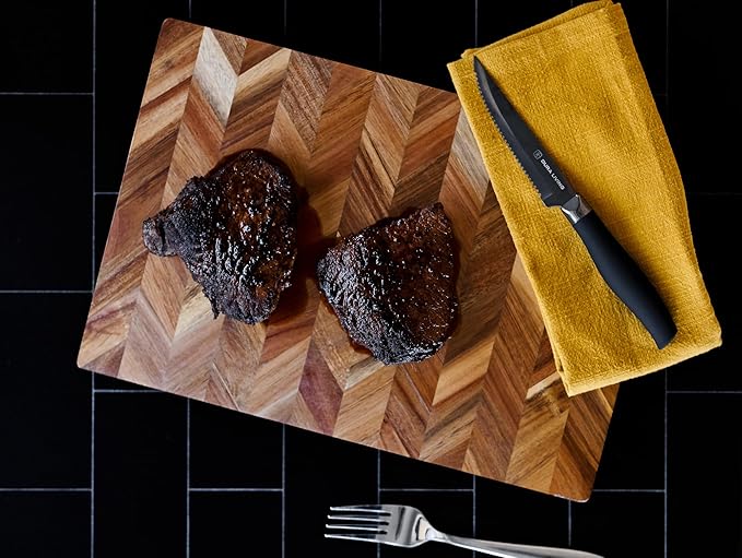 • Precision Serrated Blades: Each steak knife features a razor-sharp, nonstick serrated edge for effortless cutting through meat, ensuring restaurant-quality performance at home.