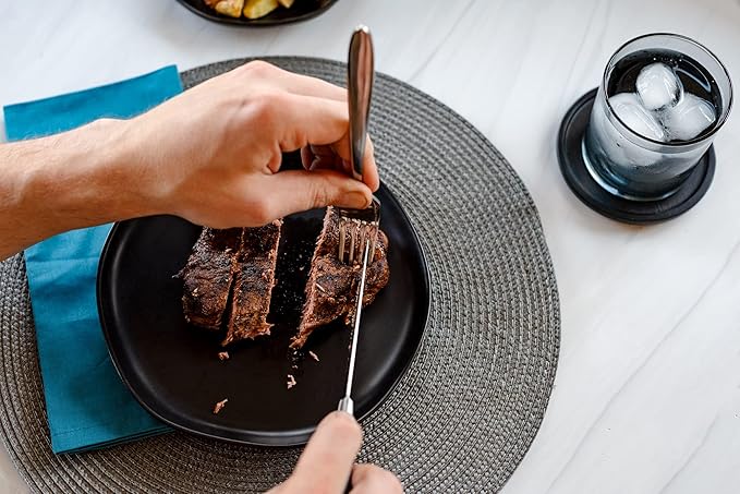 • Ergonomic, Comfort-Grip Handles: These steak knives feature ergonomic handles designed for a secure grip, ensuring comfort and reduced hand fatigue during extended use.