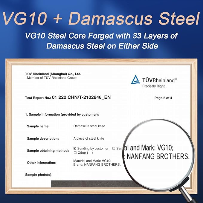 • QUALITY DESIGN - Knives are crafted with japanese VG10 steel core 67 layers superior damascus steel blades for precision and accuracy. HRC 60-62 hardness for exceptional sharpness, edge retention. Curved design handle provides comfort and support.